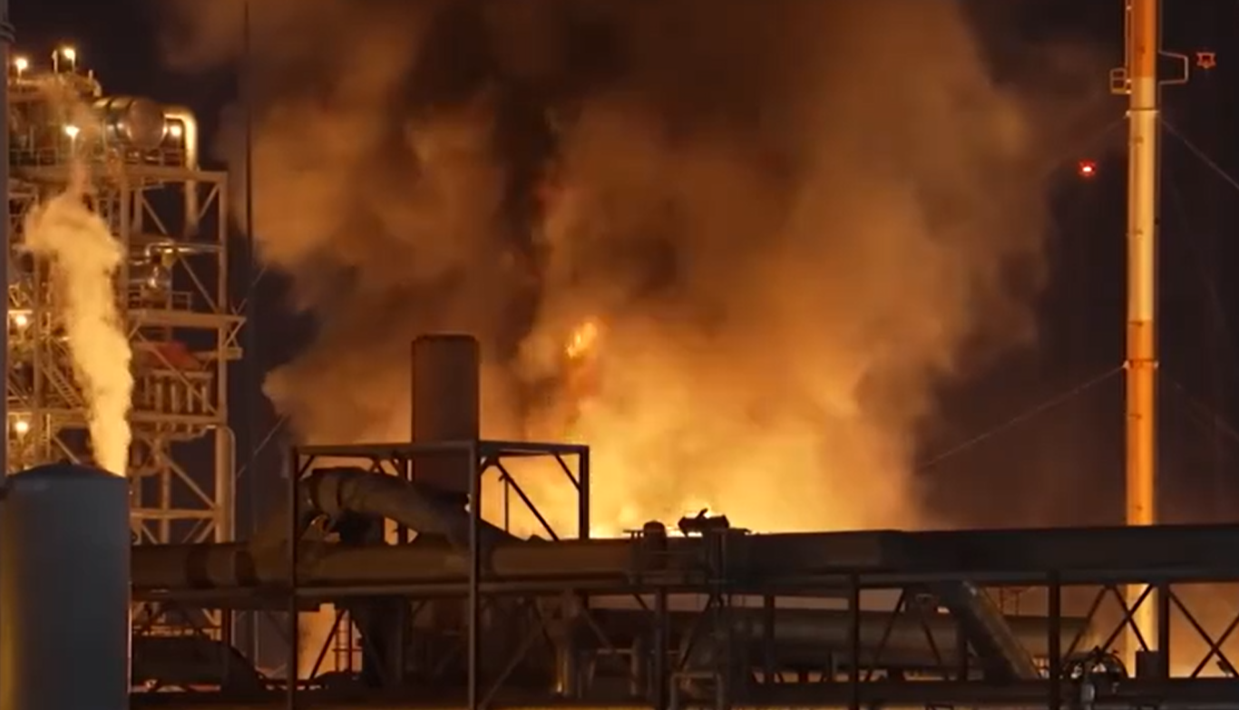 当地时间2026年3月12日,美国得克萨斯州拉波特市利安德巴塞尔(LyondellBasell)Bayport/Chocolate 化工园区发生严重工业火灾,现场明火冲天、黑烟弥漫,数公里外可见。